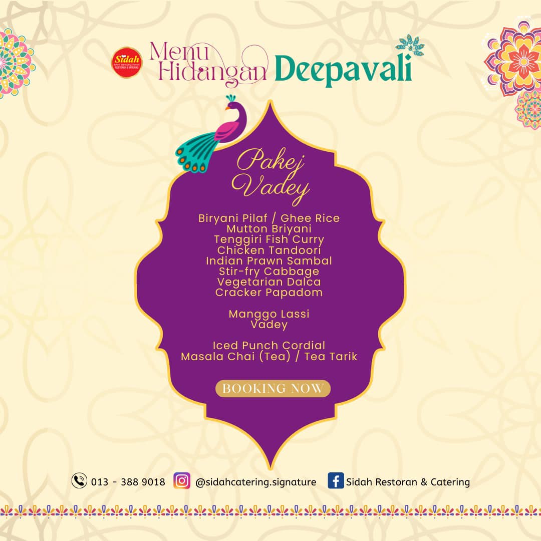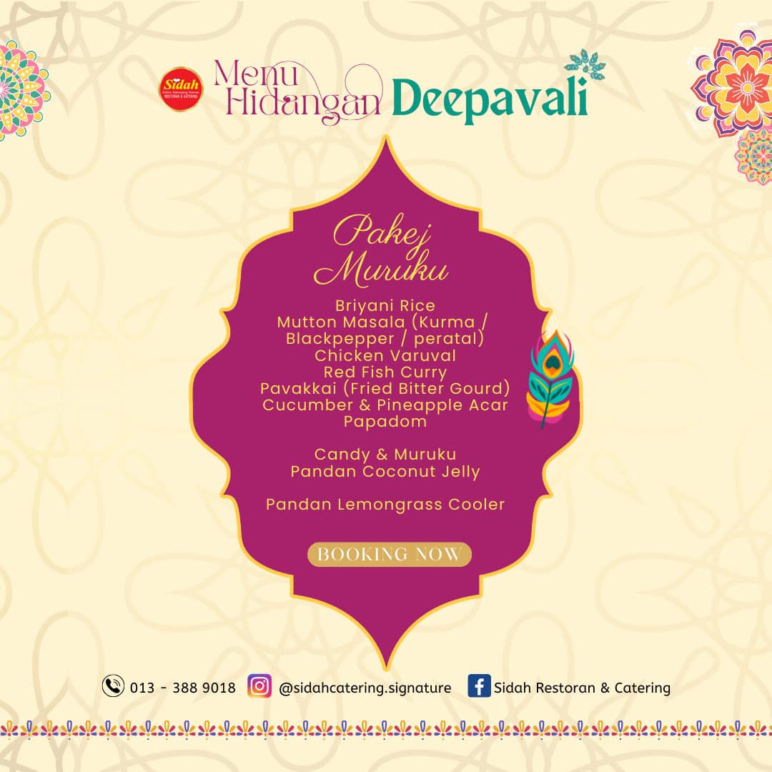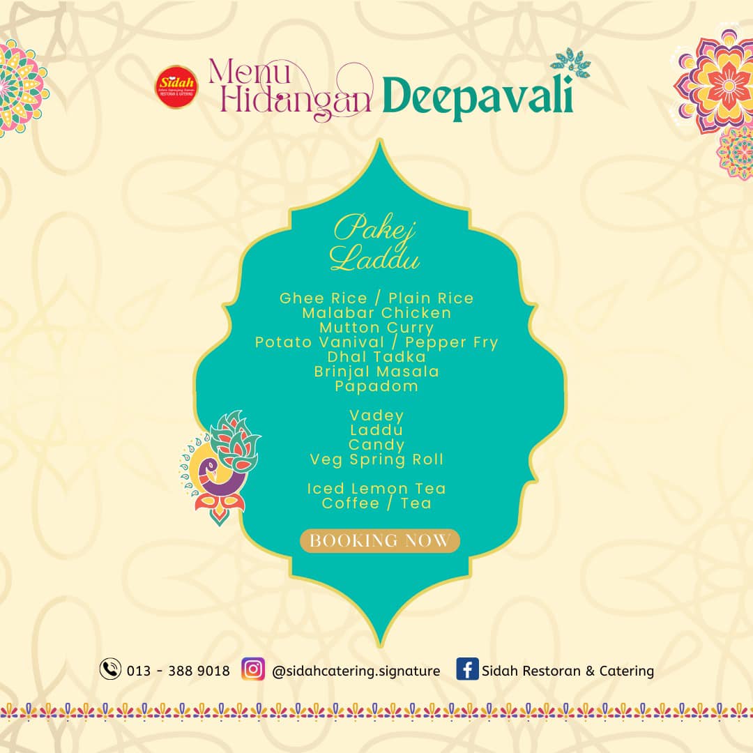Pakej Catering untuk Raya Deepavali sudah TIBA 📢 Perayaan Deepavali semakin hampir, Sidah kini tampil dengan 3 Pakej Catering Deepavali yang istimewa untuk anda raikan bersama family & rakan-rakan sepanjang musim perayaan ini.